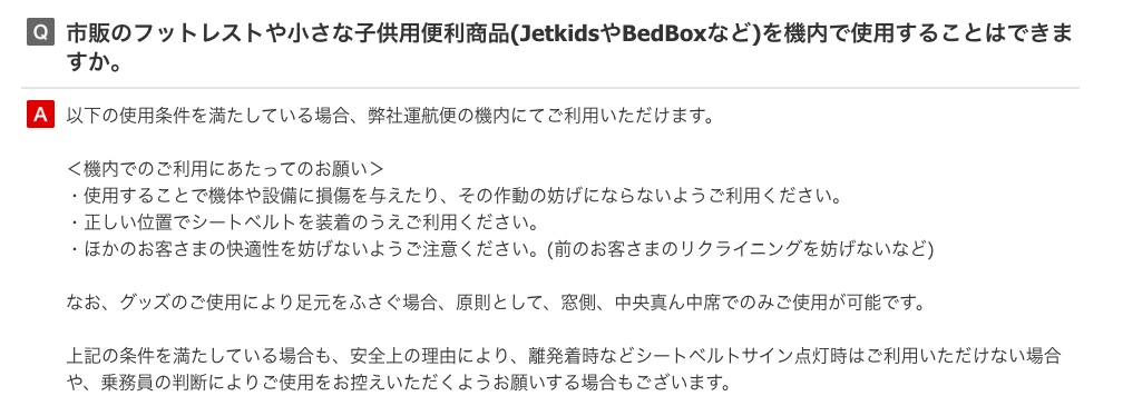 こちらはJAL公式HP内のQ&Aにありました、使用上の注意点に関する記述です。
