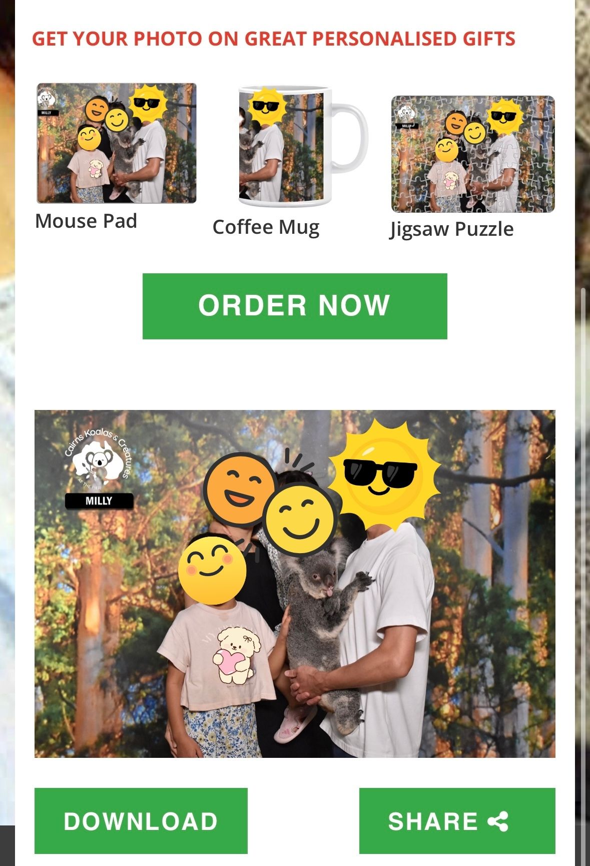 📸 Cairns Koalas & Creaturesの抱っこ写真プランの流れはとてもシンプル。
