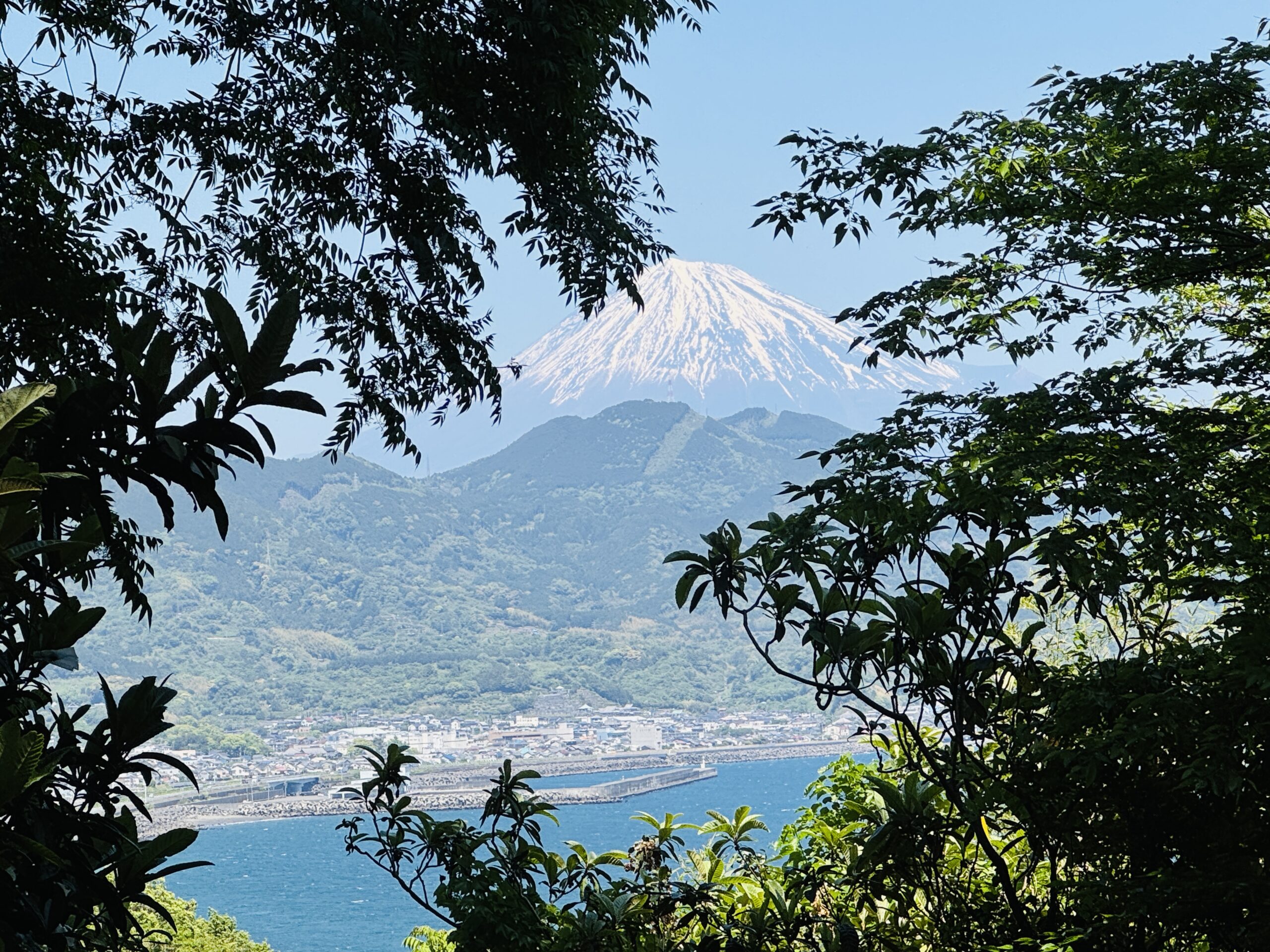 From elevated points along the trail, you can enjoy wide views of Suruga Bay and Mt. Fuji.