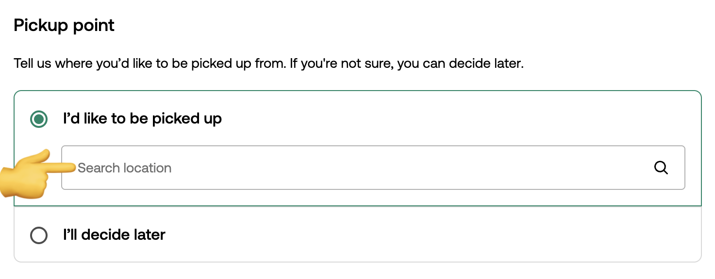 In that case, it’s best to choose a large nearby hotel along the main streets as your alternative pick-up point.