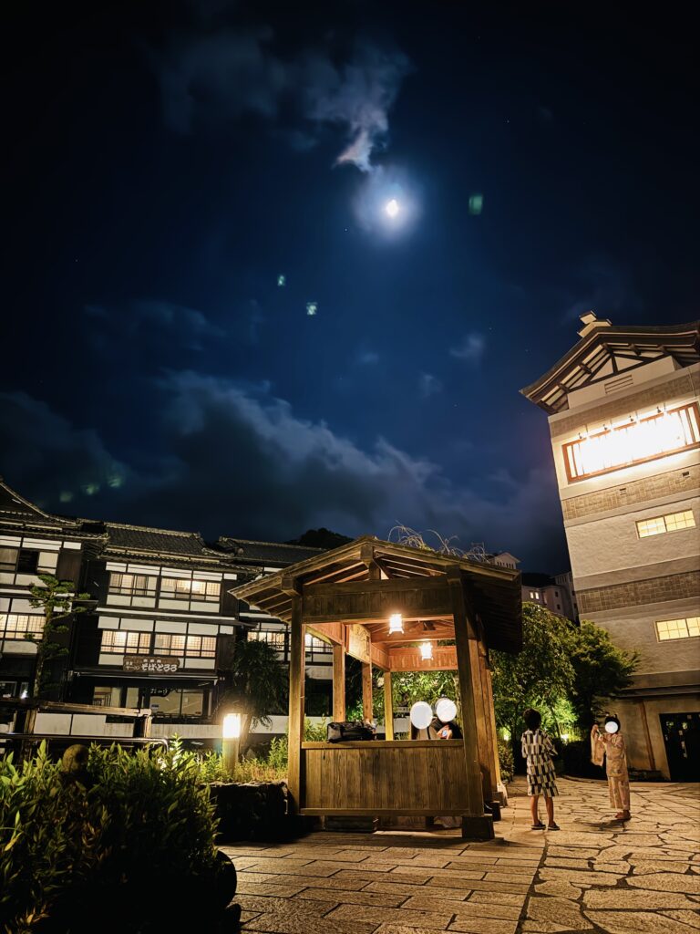 Although bathing is not allowed at Tokko-no-Yu itself, it is beautifully illuminated at night and adds to the romantic, nostalgic charm of the onsen town.