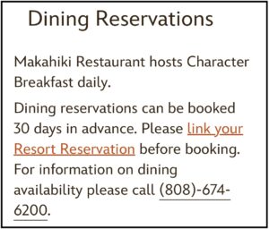 中でも、食事をしながらディズニーキャラクターたちに出会える「マカヒキ」の朝食が人気を集めていますが、とにかく予約が難しいことでも有名です。