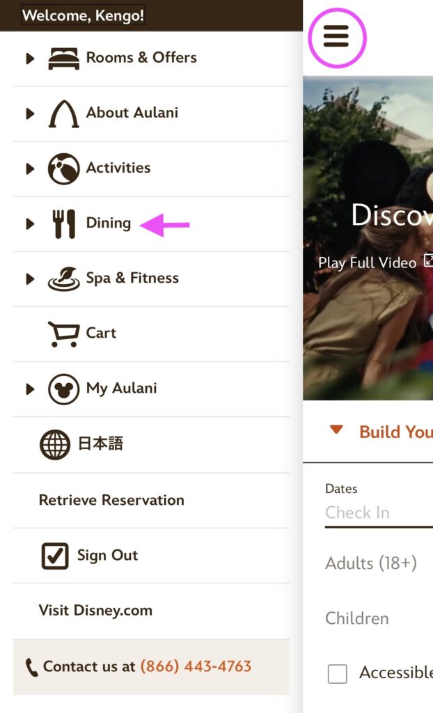 ✅まずはアウラニ公式サイトにて、予約受付開始(30日前の日本時間19時)と当時にトライ!