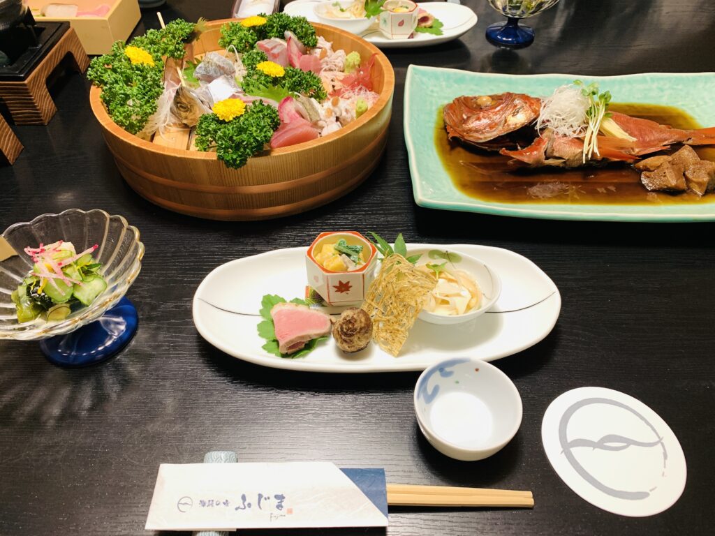 熱海中心部と比べると、伊豆多賀周辺には飲食店や物販系の店などはあまり無く、商店街のような賑わいはありませんが、旅館の夕食と貸切温泉で妻も娘も大満足だったようで、旅館内で過ごすだけで十分満足度は高かったです。