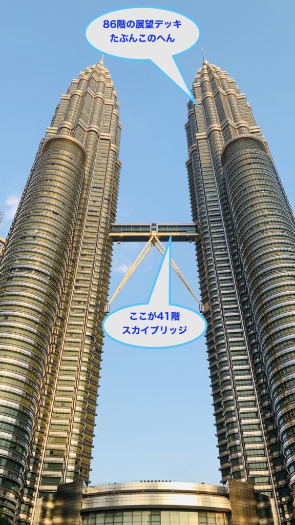 “2つのタワーをつなぐ通路になっている41階のスカイブリッジ”、そして“壮大なパノラマビューを眺められる86階の展望デッキ”、これら2つの見どころを巡ることができるツアーにはマストで参加しましょう!
